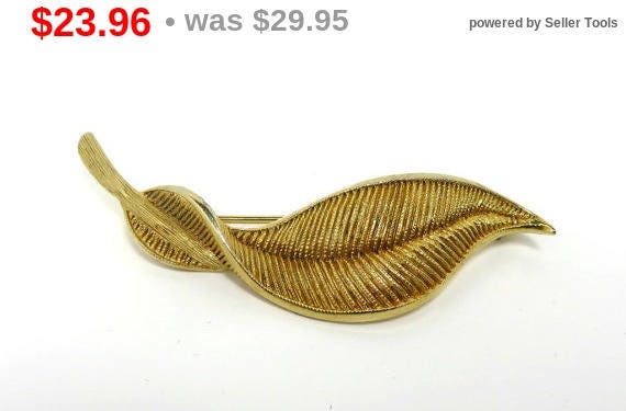 ON SALE! Hattie Carnegie Brooch, Vintage Gold Tone Curved Leaf Designer Signed Pin by LeesVintageJewels