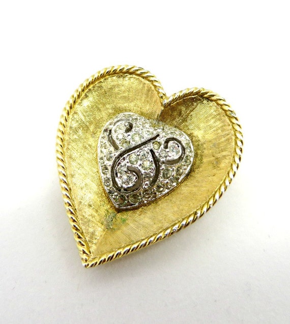 PANETTA Heart Brooch, Vintage Gold Tone Pave Rhinestone Heart Pin, Designer Jewelry, Valentine's Day Gift by LeesVintageJewels