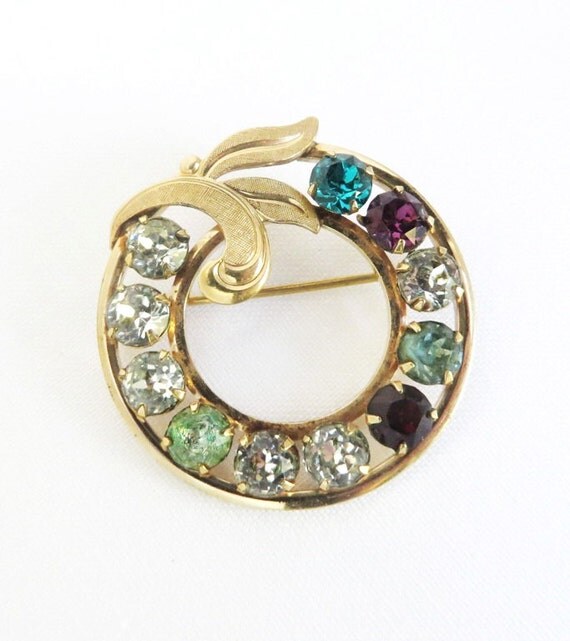 Van Dell Rhinestone Circle Brooch | Vintage 12K Gold Filled Pin by LeesVintageJewels