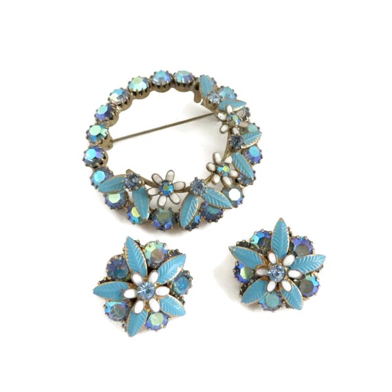 Weiss AB Rhinestone Flower Brooch Earrings Set, Vintage Demi Parure by LeesVintageJewels