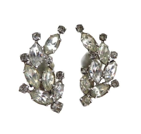 Vintage Weiss Navette and Round Rhinestone Curved Clip-on Earrings by LeesVintageJewels