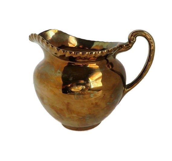 Gray's Pottery Pitcher, Vintage Hand Painted Ceramics, Gold Lustre Ware, British Pottery by LeesVintageJewels