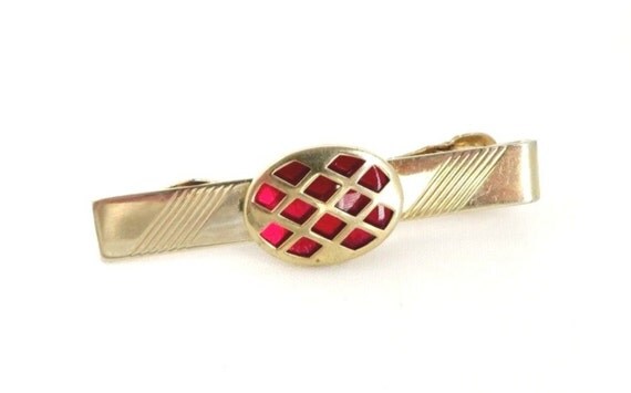 Anson Tie Clasp, Red Stone Tie Clip, Vintage Tie Bar, Gold Tone Tie Clip, Men's Suit Accessory by LeesVintageJewels