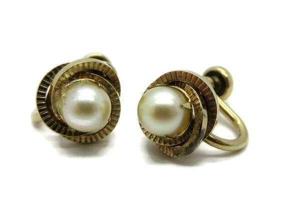 A&Z Faux Pearl Gold Filled Earrings, Vintage Screw Back Earrings by LeesVintageJewels