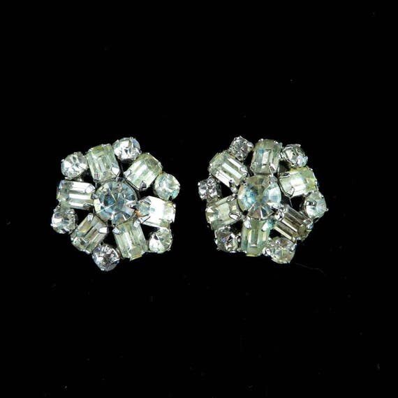 Vintage Weiss Clear Rhinestone Crystal Cluster Snowflake Clip-on Earrings by LeesVintageJewels