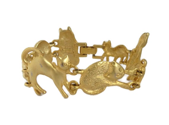 AJC Cat Bracelet, Vintage Satin Gold Tone Link Bracelet by LeesVintageJewels