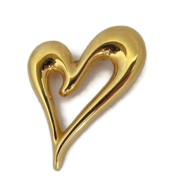 Monet Heart Brooch, Vintage Gold Tone Abstract Heart Pin Designer Signed Costume Jewelry Gift Idea by LeesVintageJewels