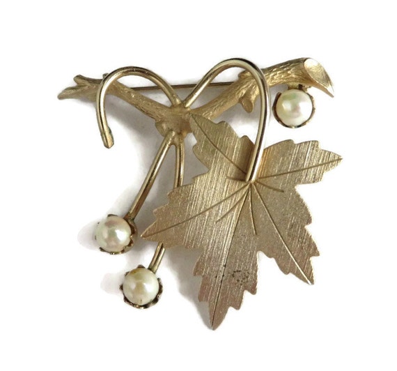 Sarah Coventry Leaf Brooch, Vintage Gold Tone Faux Pearl Pin by LeesVintageJewels