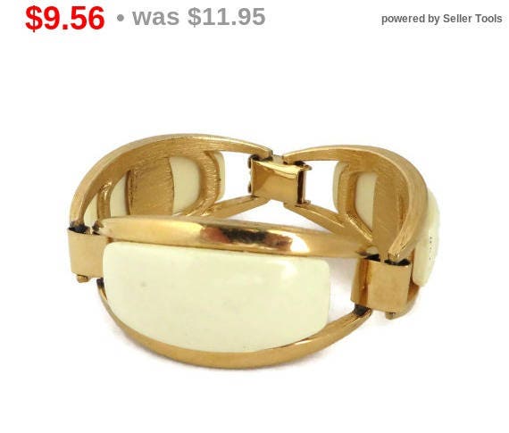 ON SALE! Vintage Cream and Gold Tone Link Bracelet, Lucite and Metal Bracelet by LeesVintageJewels