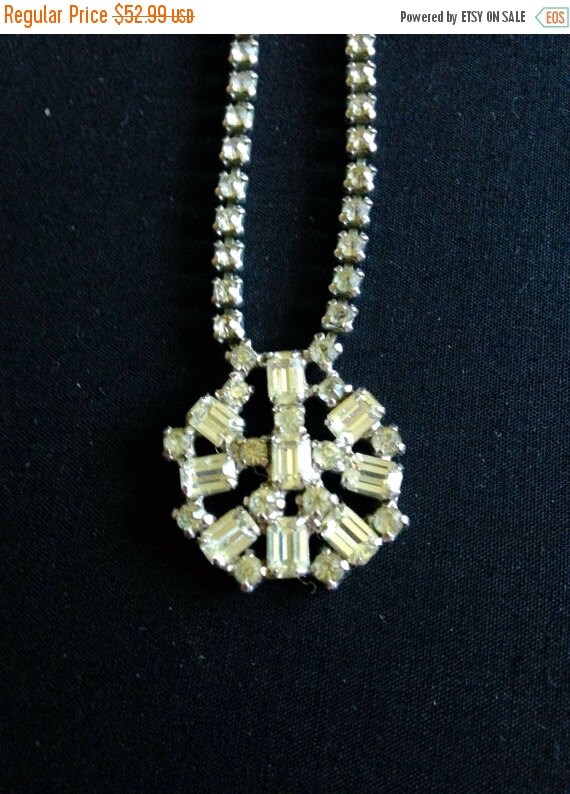 Storewide 25% Off SALE Vintage Silver Tone Pendant Style Designer Tennis Necklace Featuring Beautiful Prong Set Clear Rhinestone Accents by ClevelandFinds