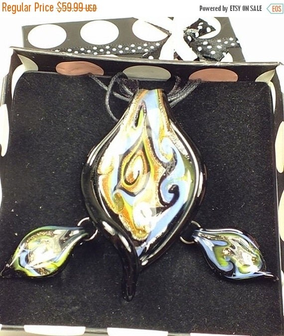 Storewide 25% Off SALE Gorgeous Murano-inpsired necklace and earring set Featuring rich shades swirls on a silver and copper foil backdrop by ClevelandFinds