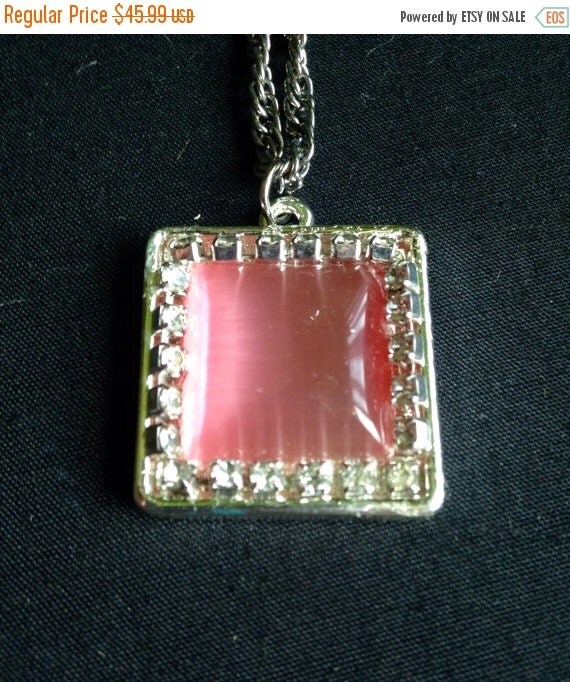 Storewide 25% Off SALE Vintage Rose Colored Opalescent Polished Rhinestone Pendant With Silver Tone Necklace Featuring Clear Rhinestone Acce by ClevelandFinds