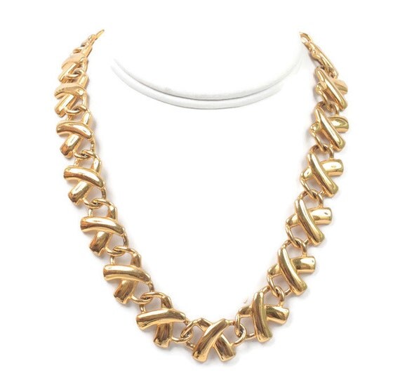 Anne Klein Necklace Gold Tone X Links Bold Chunky 1980s Retro by PastSplendors