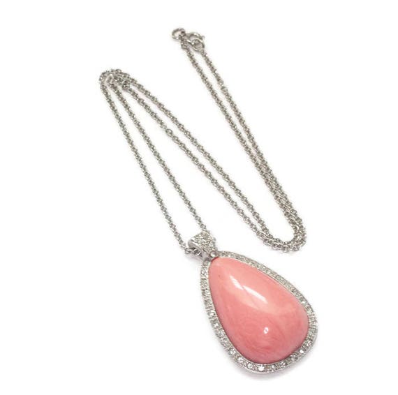 Avon Pale Fire Pendant Necklace Faux Coral Rhinestones Silver Tone 1974 by PastSplendors