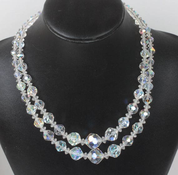 Two Strand AB Crystal Choker Necklace Faceted Graduated Beads by PastSplendors