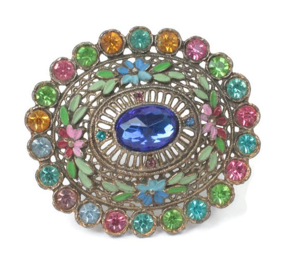 Little Nemo Oval Brooch Pastels Enamel Multi Color Rhinestones 1930s 1940s Vintage by PastSplendors