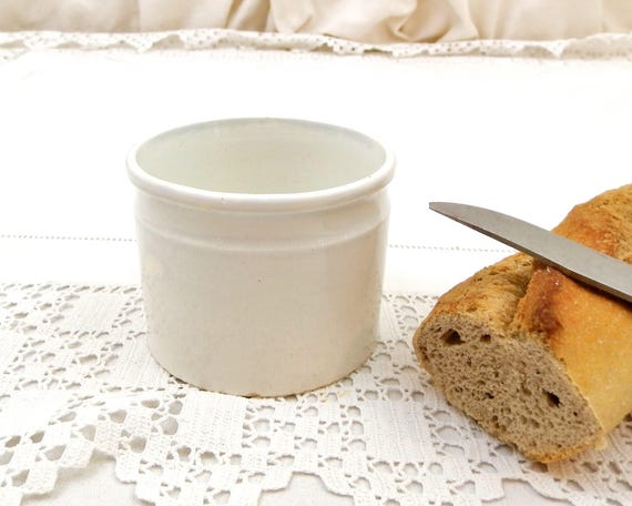 Small Antique French White Glazed Confit Pot by Creil et Montereau Faience, Earthenware Pate Rillette Bowl, Ceramic Shabby Chic French Decor by VintageDecorFrancais
