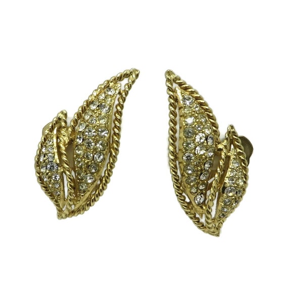 Bridal Earrings, Leaf Clip-ons, Signed Hattie Carnegie Rhinestone Earrings, Vintage Runway Bridal Jewelry Gift Idea by LeesVintageJewels